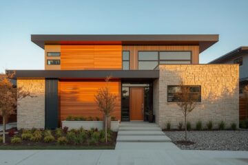 Add modern lighting fixtures along the posts, line your walkway with stone or gravel that complements the dark tone, and keep your landscaping intentionally trimmed hedges, ornamental grasses, and layered planters work wonders.